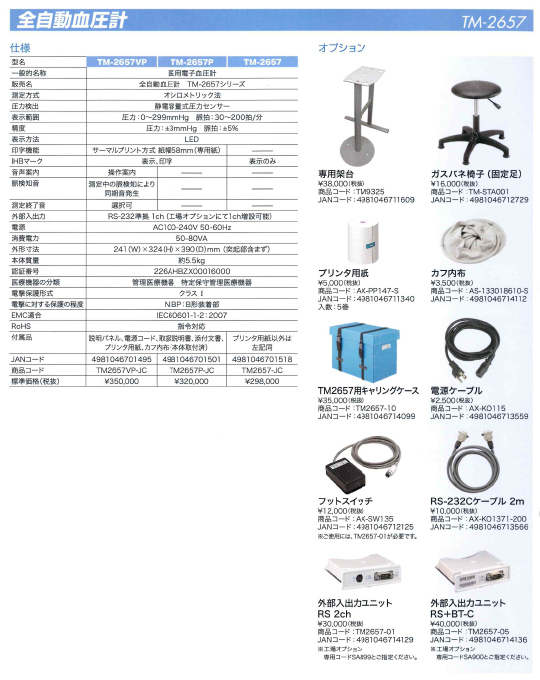 | 標準価格(税抜) | ユーシン医療器価格(税抜) |